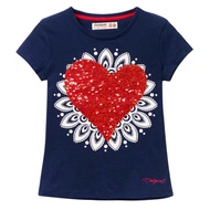 Koszulka dziewczęca Desigual Dover granatowa z cekinami serce