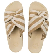 Klapki damskie Flip Flop Wedgy Twist lekkie beżowe w paski