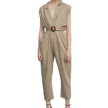 Kombinezon damski Zara lniany beżowy bez rękawów