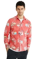 Koszula męska Desigual Roz kremowa z artystyczny printem