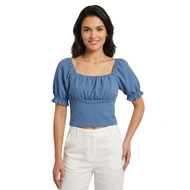 Bluzka damska Naf Naf Sylvou niebieska crop