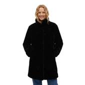 Płaszcz damska Mango czarny futrzany przed kolano