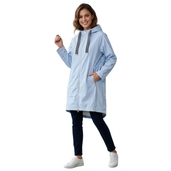 Płaszcz damski Mat De Misaine Fariza błękitny z kapturem przed kolano