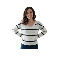 Sweter damski Only Bernice azurowy biały klasyczny w serek