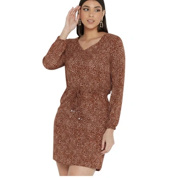 Sukienka damska Only Melanie prosta wiązana ceglasta