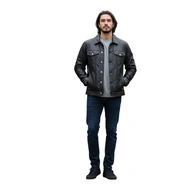 Kurtka męska Isaco&Kawa skórzana czarna z kołnierzykiem