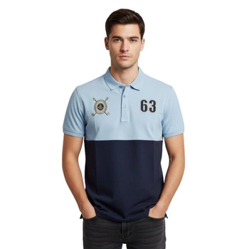Koszulka męska Jean-Louis Scherrer Neo polo niebieska bawełniana