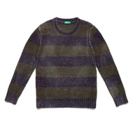 Sweter dziecięcy Benetton klasyczny miękki w paski zielone