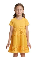 Sukienka dziewczęca Desigual Raquel żółta z falabnami ażurowa