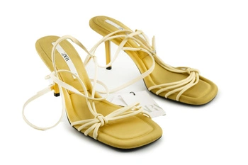 Sandały damskie ZARA szpilka z wiązaniem, limonkowy pastel