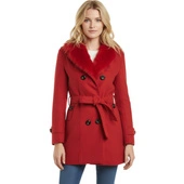 Płaszcz damski Rvhswds Double-Sided czerwony elegancki z futerkiem