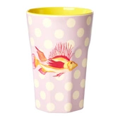 Kubek melaminowy RICE Fish różowy w kropki z nadrukiem ryby 400 ml