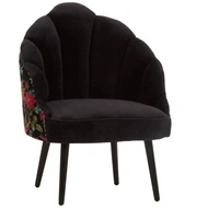 Fotel Fena Peacock Sefina czarny welurowy muszelka