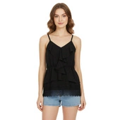 Top damski Fracomina Zaida z falbanami koronką na ramiączkach czarny