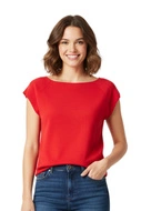 Bluzka damska S.Oliver z krótkim rękawem dopasowana czerwona