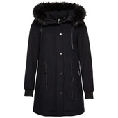 Płaszcz damski Superdry Wool Parka wełniany z kapturem granatowy