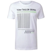 Koszulka męska Tom Tailor Logo Print bawełniana z napisami t-shirt biały