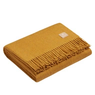 Narzuta na łóżko wełniana Alpaka musztardowa z frędzlami 150x200 cm