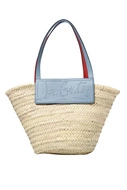 Torebka Christian Louboutin Loubi Shore Medium skórzana słomkowa szary