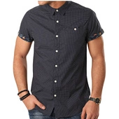 Koszula męska Deeluxe Pagos z krótkim rękawem granatowa w kropki