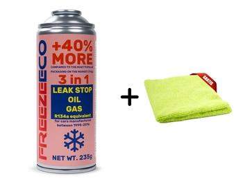 Zestaw FreezeEco zamiennik R134a + 3 w 1 czynnik do klimatyzacji z olejem i uszczelniaczem + Mikrofibra