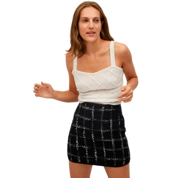 Spódnica damska Mango czarna z domieszka wełny w kratę