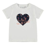 Koszulka dziewczęca Name It Delfin z krótkim rękawem kremowa z serduszkiem