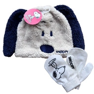 Komplet czapka rękawiczki Peanuts Snoopy zimowy piesek czarny