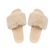 Klapki damskie Flip Flop Pool Furry futrzane beżowe