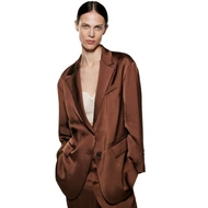 Marynarka damska Zara oversize satynowa brązowa