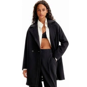 Płaszcz damski Desigual Stitch czarny wełniany przejściowy